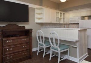 Located right on beautiful Crescent Lake, Disney's BoardWalk Villas invites you to take a stroll down the 1930's Eastern seaboard-style boardwalk and relish in the charm of old Americana! Restaurants, shops, nightclubs, street performers and even carnival games come dusk line the boardwalk, offering plenty of ways to keep busy without ever leaving the resort. Cool off in the large, freeform pool with a 200-foot-long water slide, or swim up for a drink at the Leaping Horse Libations poolside bar. For a truly unique experience, tour the boardwalk from atop a two to six-person "surrey bike"!
