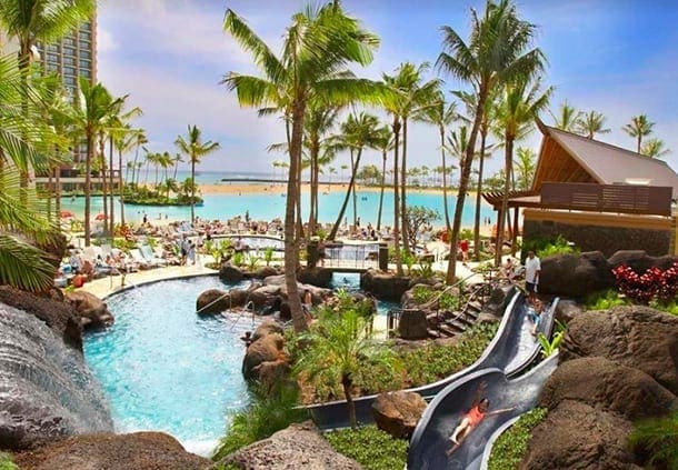 The unsurpassed Waikiki beach front and spectacular setting of the Hilton Hawaiian Village Beach Resort and Spa combine to make the Hilton Grand Vacations Club at the Kalia Tower an unforgettable destination. The 72-unit Hilton Grand Vacations Club at the Kalia Tower is situated on six floors of the tower, offering luxurious timeshare studio suites and one-bedroom condominium-style accommodations. The casually elegant decor compliments the panoramic mountain or ocean views. Hilton Hawaiian Village rests on 22 acres of prime Oahu beachscape. Enjoy any of the resort's three swimming pools, whirlpool spa, Mandara Spa and Holistica Hawaii Health Center, barber shop and beauty salon, supervised recreation programs, and restaurants and lounges.