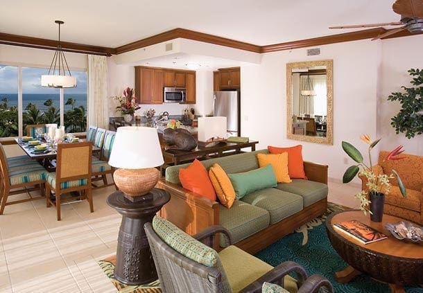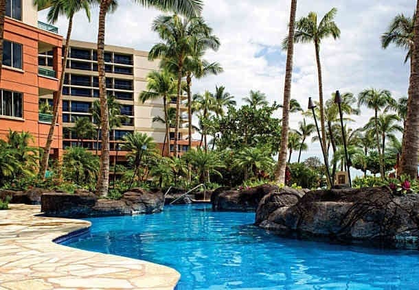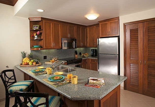 Relax at Marriott's Maui Ocean Club. The original structure of this timeshare resort is a converted hotel that offers one-bedroom, two-bath, and two- bedroom, three-bath accommodations. Each unit features a king bed, separate bath, and lanai in the master suite, kitchenette with microwave, mini-refrigerator, and dishwasher, and TVs with DVD players. There are 9 floors with 442 suites. Marriott's Maui Ocean Club is located in the town of Lahaina and overlooks Maui's Ka'anapali Beach. It's also just blocks from Whaler Village for great dining and shopping. Location is perfect for whale watching in the winter. Kids and kids-at-heart will get a kick out of the resort's 3.5-acre super pool complete with a water slide, waterfalls, and children's area. The poolside bar is a great place to rest and relax while the little ones splash until their heart's content. Maui Ocean Club also offers amenities such as a beauty shop, barbecue area, game room, and restaurants. If you are looking for a unit with a full kitchen please see Lahaina Villas of Marriott's Maui Ocean Club. The units at Marriott's Maui Ocean Club do not have full kitchens nor in unit washer and dryers.